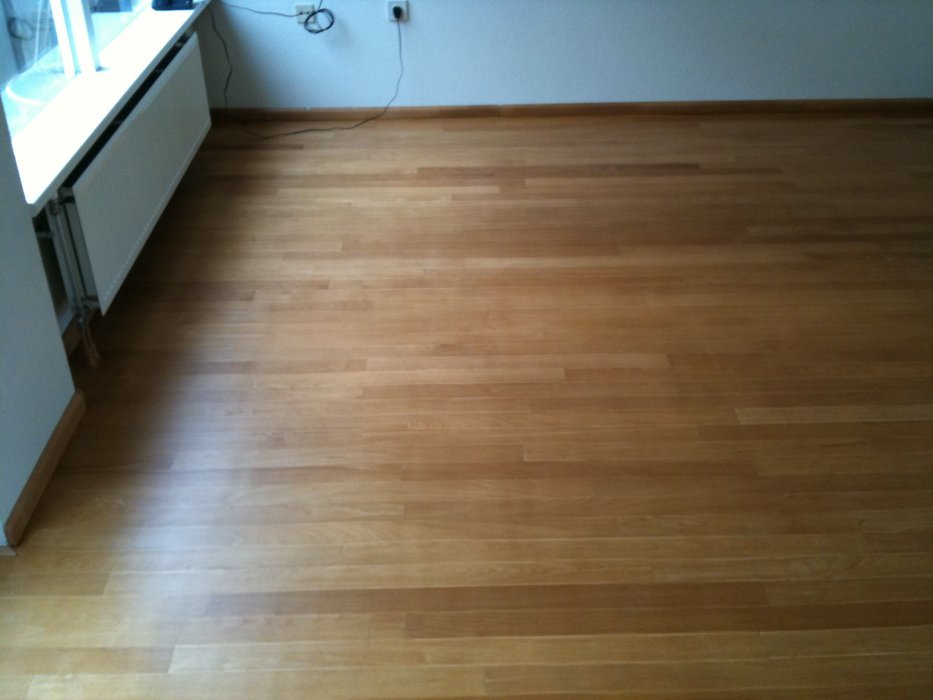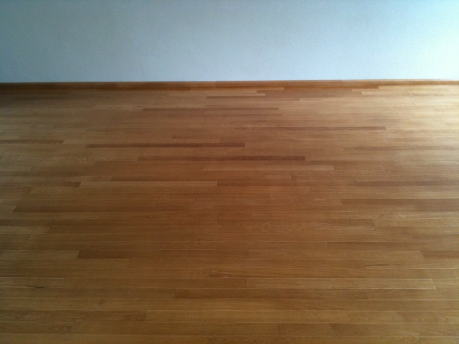 Gezien de vele goede referenties die we hadden gelezen of J&J Baumann leek het ons vreemd dat de vloer niet goed gelakt was dus hebben we wat foto’s gemaakt en per email naar hun opgestuurd. Al snel kregen we een telefoontje, de lak was niet goed uitgevloeid en natuurlijk hoorde dat niet zo en zaten ze al bijna in de auto om het te herstellen :)
