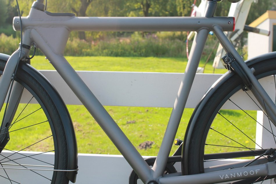 De gebruikte materialen zijn van hoge kwaliteit, mooi afgewerkt en je kan zien dat er met enthousiasme aan is gewerkt om echt een fiets te maken die meer is dan een gewone fiets. De ketting is verstopt in een mooie slanke kettingkast, voor de remmen zijn twee schijfremmen gebruikt die prima voldoen. De motor zit ‘verstopt’ in het voorwiel en in eerste opslag zie je eigenlijk niet eens dat het een elektrische fiets is, zo netjes is het gemaakt. En natuurlijk is er de verlichting waar VANMOOF zo bekend om is geworden, super mooi en prachtig geïntegreerd in het aluminium buizenframe.